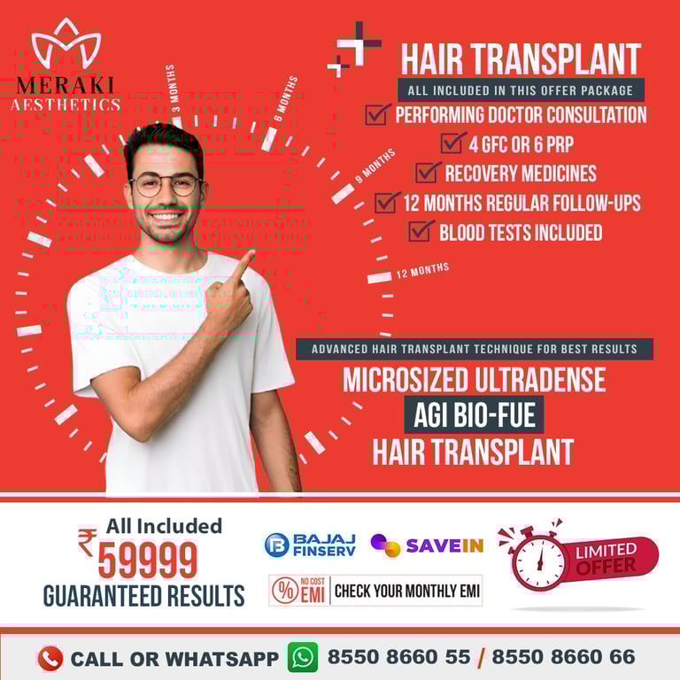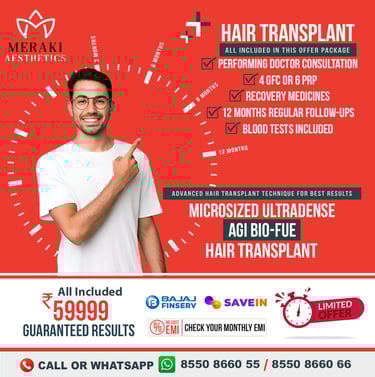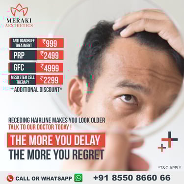 At Meraki Aesthetics in Whitefield, our expert dermatologists and cosmetologists offer advanced, personalized solutions for hair fall, dandruff, hair thinning, and scalp concerns. We begin with a detailed scalp and hair analysis to diagnose the root cause, whether it's stress, hormones, pollution, genetics, or nutritional deficiency.